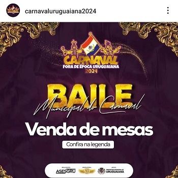 Mais informações na página do Carnaval de Uruguaiana 2024, no Instagram.